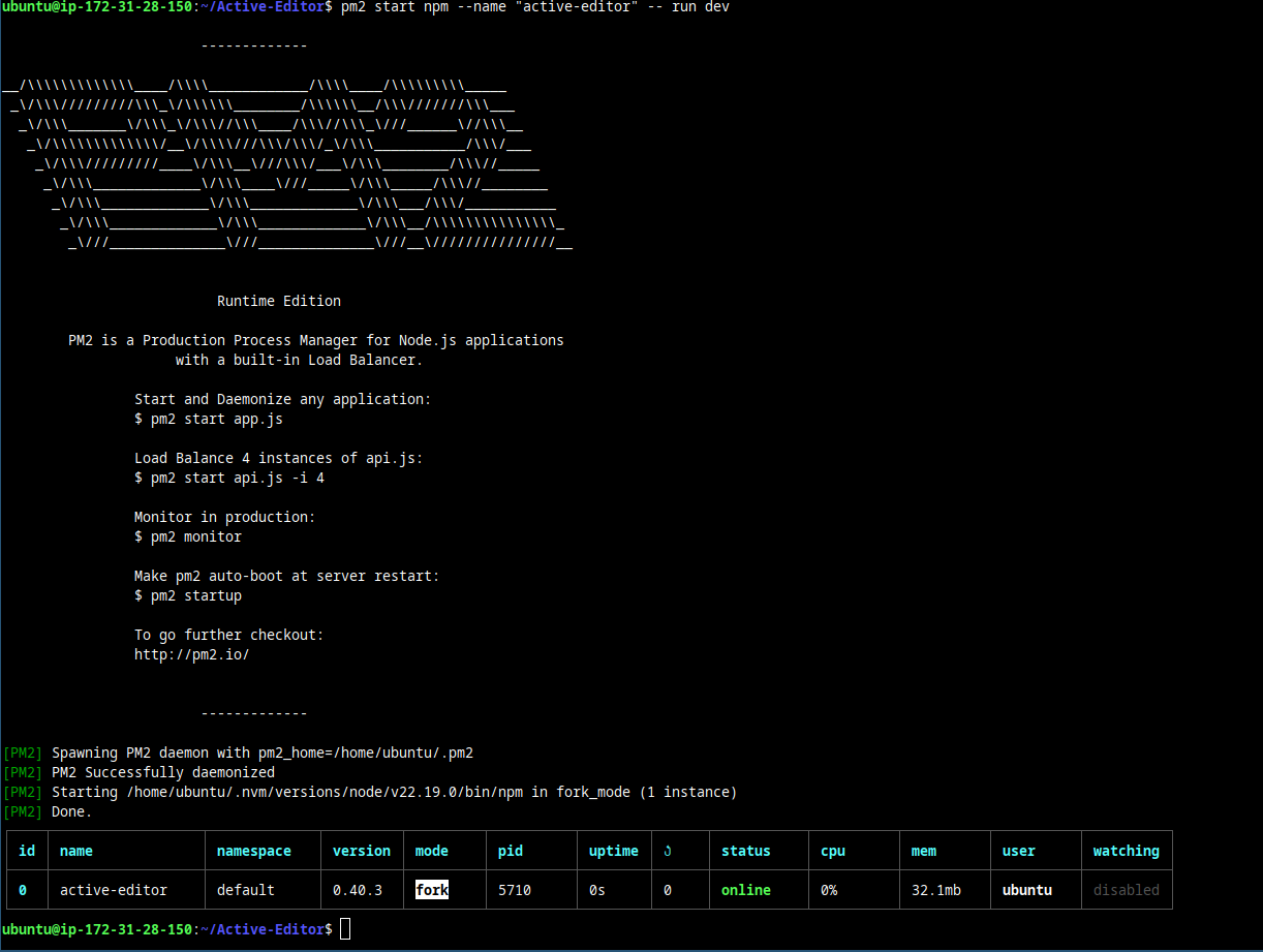 That's it! You have successfully deployed your Node.js application on an EC2 instance using PM2. You can now close your SSH session with confidence, knowing that your application is: